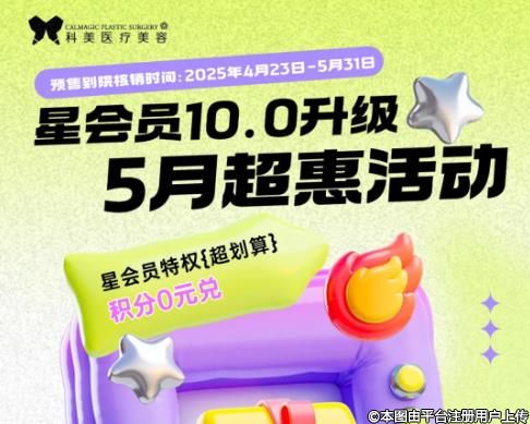 珠海科美整形會(huì)員5月重磅升級(jí),積分狂送,秒殺低至1折