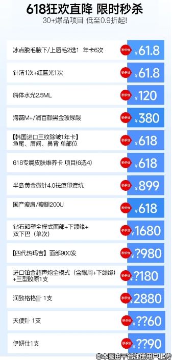 61.8元起得脫毛年卡、除皺年卡、熱瑪吉、大牌玻尿酸