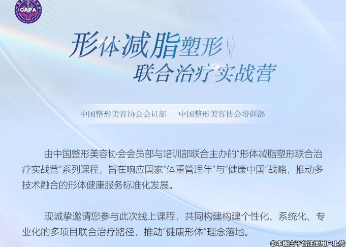 由中國整形美容協(xié)會(huì)會(huì)員部與培訓(xùn)部聯(lián)合主辦的“形體減脂塑形聯(lián)合治療實(shí)戰(zhàn)營“系列課程,旨在響應(yīng)國家“體重管理年”與“健康中國”戰(zhàn)略,推動(dòng)多技術(shù)融合的形體健康服務(wù)標(biāo)準(zhǔn)化發(fā)展。