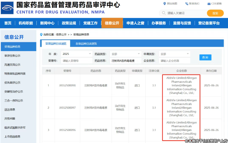艾爾建美學(xué)保妥適額紋適應(yīng)癥申請獲NMPA受理