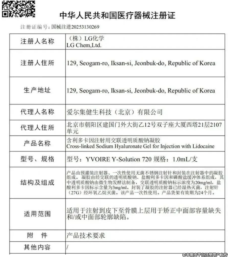 2025年6月23日,愛爾集健生科技(北京)有限公司代理的(株)LG化學(xué)(LG Chem, Ltd.)新產(chǎn)品——利多卡因注射用交聯(lián)透明質(zhì)酸鈉凝膠正式獲得中國批準(zhǔn)。