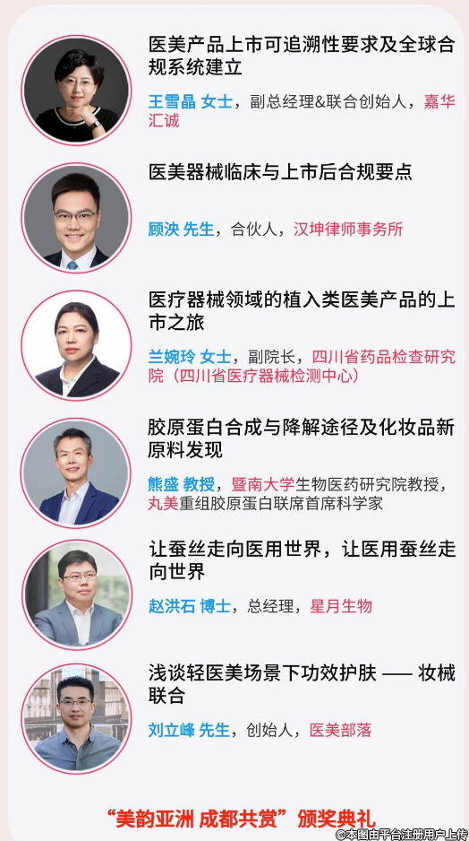 支持單位 | 四川省化妝品質(zhì)量發(fā)展促進會、成都中城九聯(lián)產(chǎn)業(yè)發(fā)展有限公司、華熙生物、上海市生物醫(yī)藥產(chǎn)品注冊指導(dǎo)服務(wù)工作站外高橋分站、上海外高橋生物醫(yī)藥產(chǎn)業(yè)發(fā)展有限公司