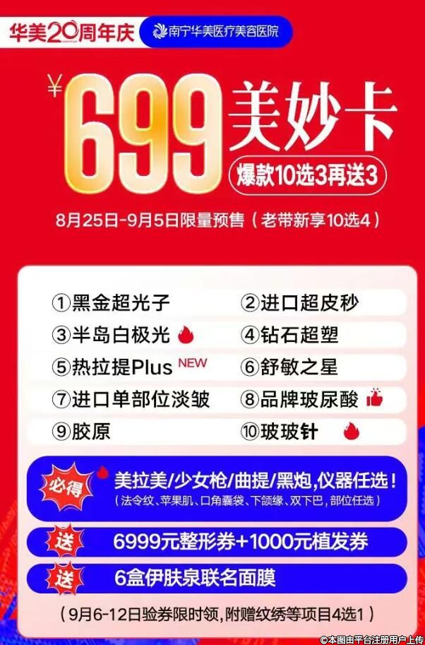 南寧華美20周年慶 | 699元美妙卡正式開搶!享項(xiàng)目10選3再送3!