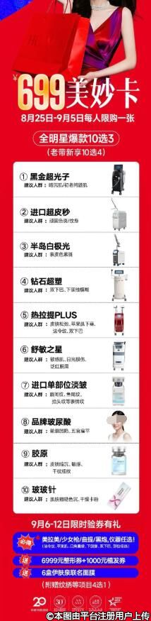 以上項(xiàng)目10選3,僅需699元??!搶購時間截止至9月5日