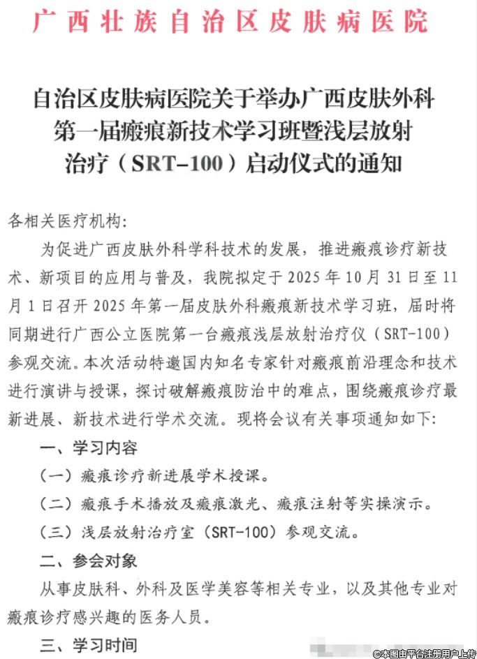 廣西第一屆瘢痕新技術(shù)學(xué)習(xí)班暨淺層放射治療系統(tǒng)(SRT-100)即將啟動 |會議通知