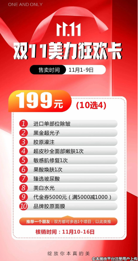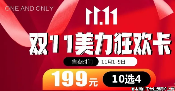 壹加壹雙11美力狂歡卡超燃來襲,熱門10大爆款任選4項!超級劃算。雙11美力狂歡卡 預(yù)售來襲!熱門10大爆款限時秒殺!僅需199元任選4項!