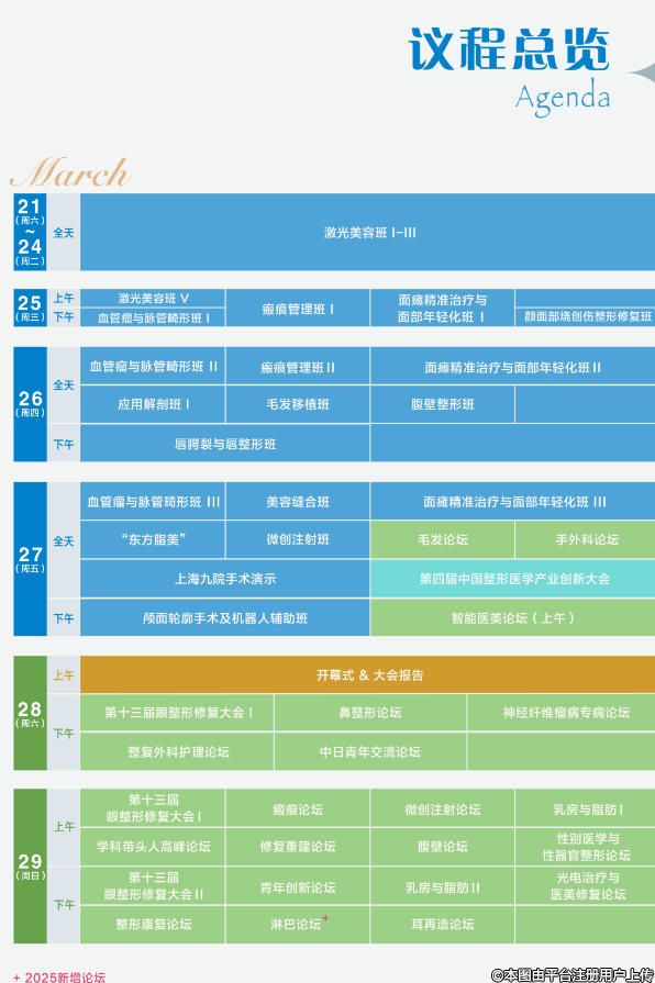 上海整形科技周(2026)暨第15屆上海整形美容論壇將于2026年3月21日至29日在上海舉行。大會“以經(jīng)典為舟,以創(chuàng)新為帆”,屆時將會為國內(nèi)外同行帶來目前行業(yè)最新進(jìn)展,不同專題班,邀請名師傳授技術(shù),熱誠歡迎海內(nèi)外同道一起參與,一起交流,一起分享!