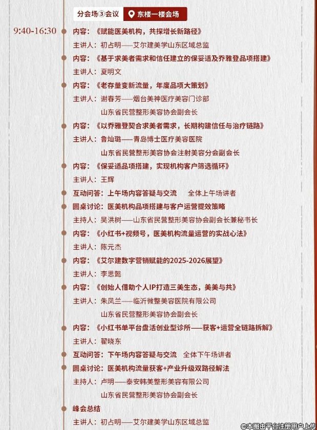 根據(jù)《山東省民營(yíng)整形美容協(xié)會(huì)章程》的規(guī)定,結(jié)合協(xié)會(huì)工作安排,茲定于2026年1月7日-1月9日在泰安召開2025年山東省整形美容年會(huì)暨第四次全省整形美容學(xué)術(shù)大會(huì)。大會(huì)以“黨建引領(lǐng),技術(shù)創(chuàng)新”為主題,共商山東醫(yī)美產(chǎn)業(yè)高質(zhì)量發(fā)展。