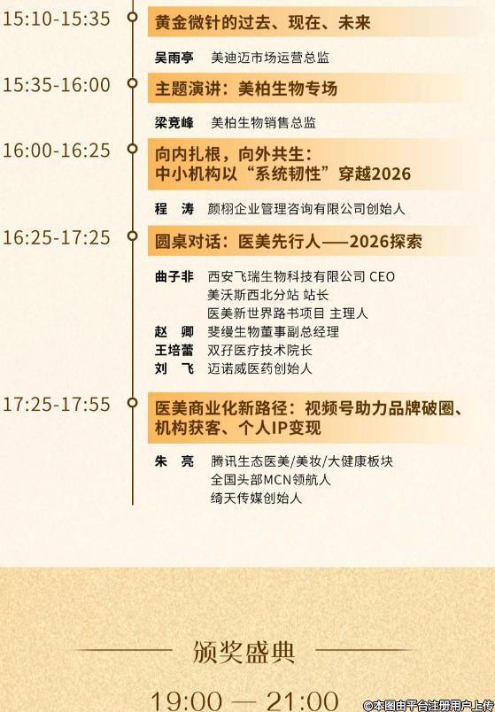這場以“向前的力量”為主題的行業(yè)盛會,聚焦醫(yī)美產(chǎn)業(yè)從增量擴張到存量深耕的轉型關鍵,匯聚學術權威、企業(yè)高管、機構運營專家等多方力量,通過主題演講、圓桌論壇及頒獎盛典等多元形式,拆解行業(yè)痛點、預判發(fā)展趨勢,解鎖2026醫(yī)美行業(yè)發(fā)展新航向。