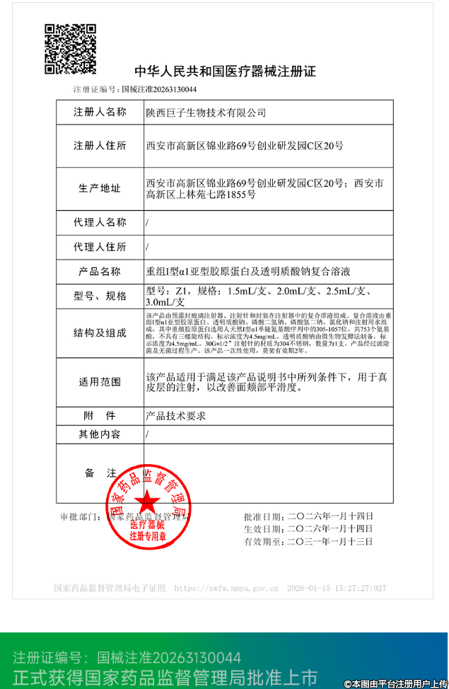 全球首個丨注射用重組膠原蛋白和透明質(zhì)酸鈉復合溶液獲批
