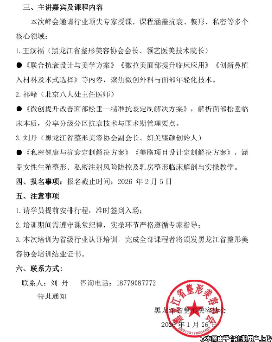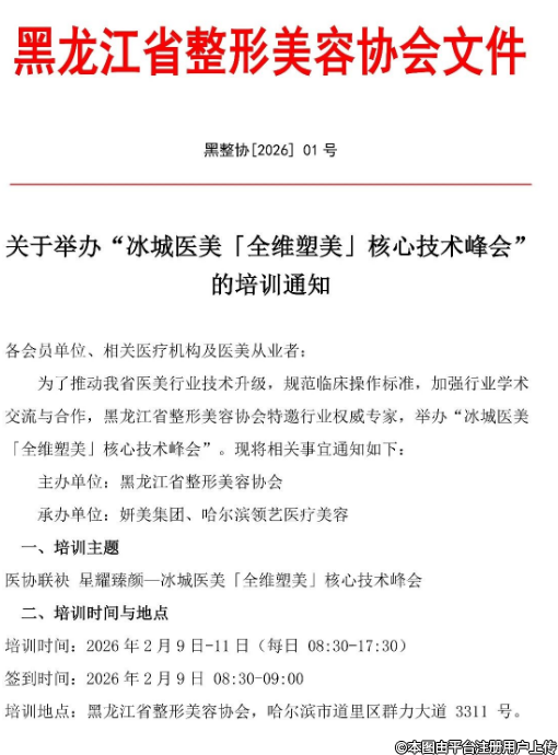 關(guān)于舉辦“冰城醫(yī)美「全維塑美」核心技術(shù)峰會(huì)”的培訓(xùn)通知