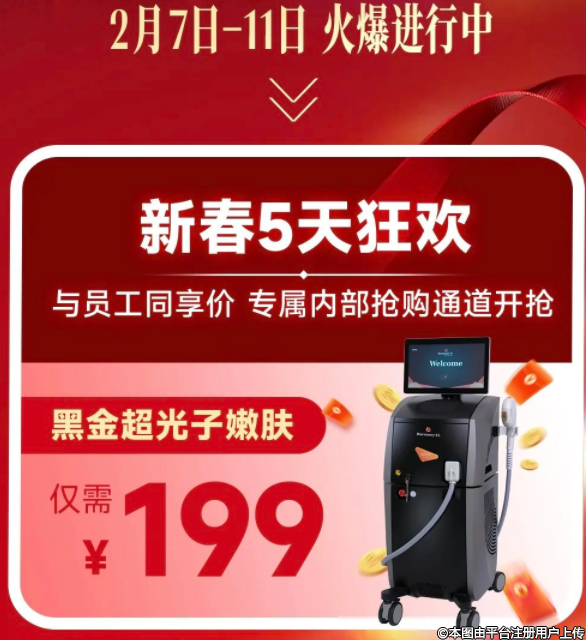 內(nèi)購價終于開放啦!當(dāng)春節(jié)的腳步臨近,是時候給辛苦一年的自己一份特別犒賞。2月7日-11日 限時5天,一次讓你擁有新年“好氣色”的絕佳機會。寶藏福利手慢無,新春回饋 超級內(nèi)購價。首推爆款,黑金超光子嫩膚 → 199元,(限量搶購 售完即止 僅限內(nèi)購?fù)ǖ溃?,主打一個“花小錢變大漂亮”。