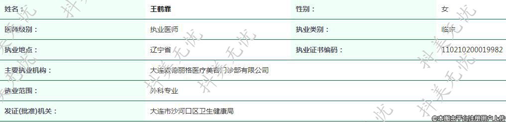 主要執(zhí)業(yè)機(jī)構(gòu):大連愛(ài)德麗格醫(yī)療美容門(mén)診部有限公司