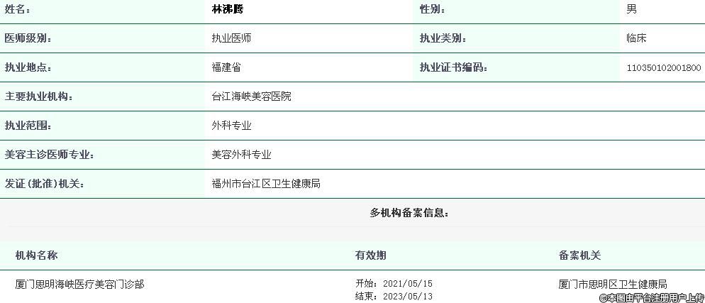 主要執(zhí)業(yè)機(jī)構(gòu):臺江海峽美容醫(yī)院