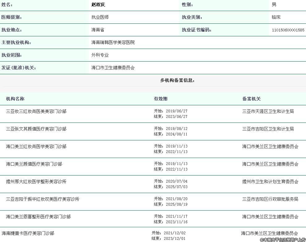 三亞妝三紅妝尚執(zhí)業(yè)醫(yī)師