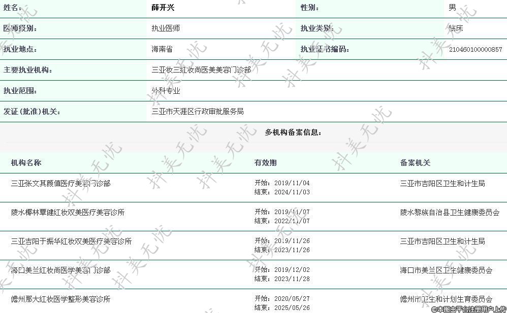 三亞妝三紅妝尚執(zhí)業(yè)醫(yī)師