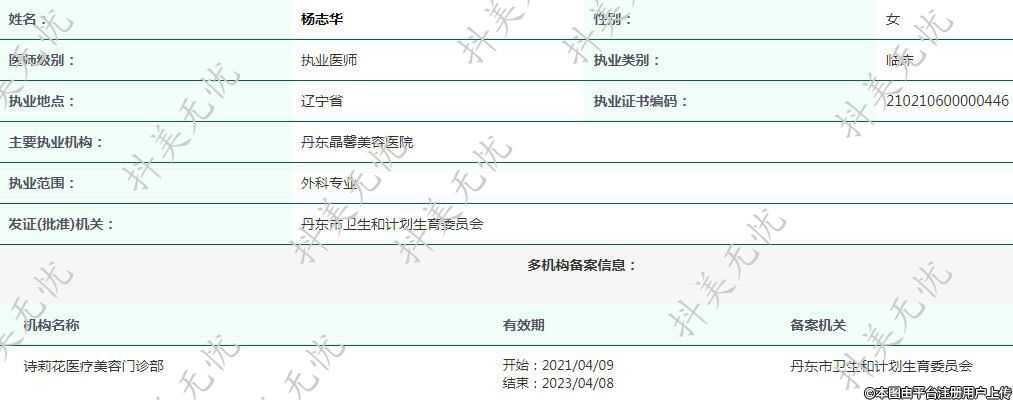 主要執(zhí)業(yè)機(jī)構(gòu):丹東晶馨美容醫(yī)院