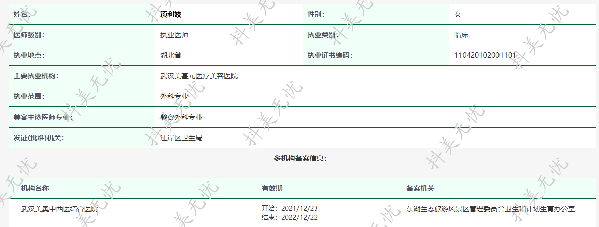 主要執(zhí)業(yè)機(jī)構(gòu):武漢美基元醫(yī)療美容醫(yī)院