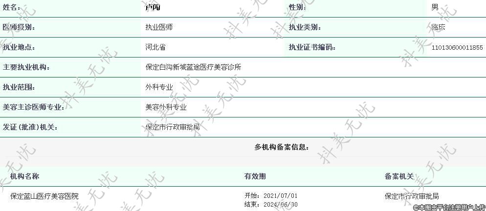 主要執(zhí)業(yè)機構(gòu):保定白溝新城藍途醫(yī)療美容診所