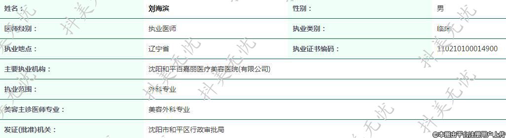 主要執(zhí)業(yè)機(jī)構(gòu):沈陽和平百嘉麗醫(yī)療美容醫(yī)院(有限公司)