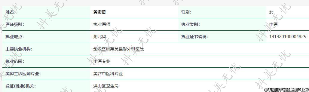 主要執(zhí)業(yè)機構(gòu):武漢五洲萊美整形外科醫(yī)院