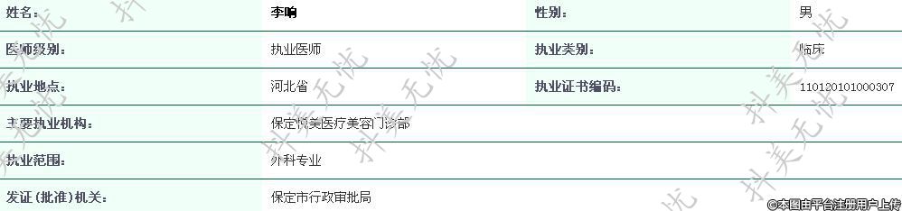 主要執(zhí)業(yè)機(jī)構(gòu):保定悅美醫(yī)療美容門(mén)診部