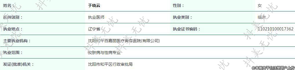 主要執(zhí)業(yè)機構:沈陽和平百嘉麗醫(yī)療美容醫(yī)院(有限公司)