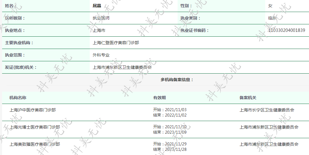 現(xiàn)就職于上海光博士醫(yī)療美容門診部