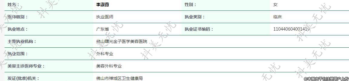 主要執(zhí)業(yè)機(jī)構(gòu):佛山曙光金子醫(yī)學(xué)美容醫(yī)院