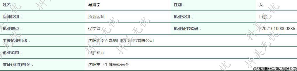 主要執(zhí)業(yè)機(jī)構(gòu):沈陽(yáng)和平百嘉麗口腔門診部有限公司