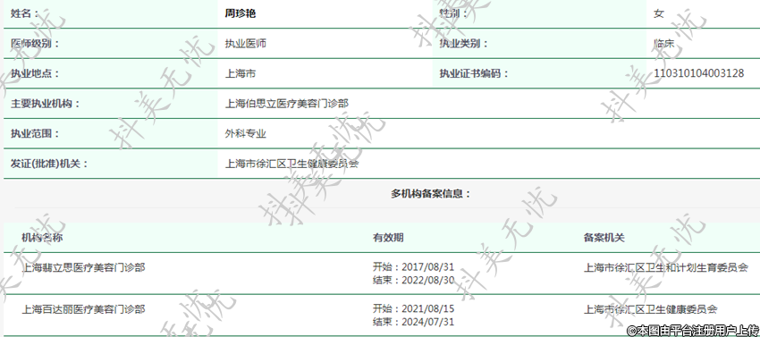 主要執(zhí)業(yè)機構:上海伯思立醫(yī)療美容門診部