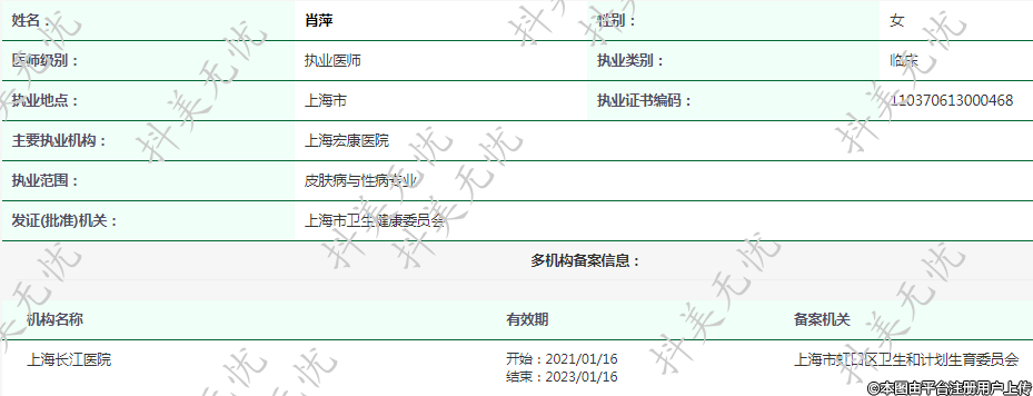 執(zhí)業(yè)范圍:皮膚病與性病專(zhuān)業(yè)