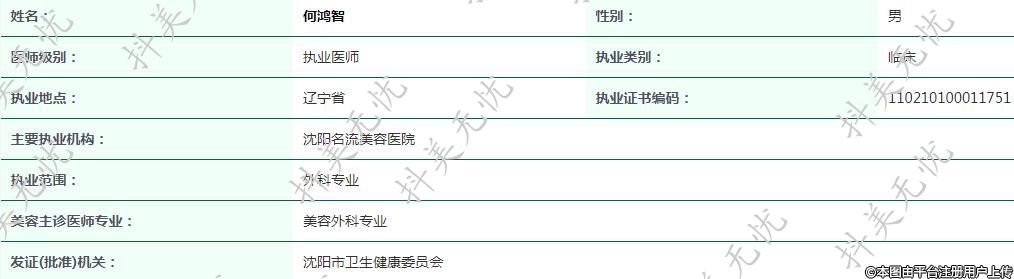 主要執(zhí)業(yè)機(jī)構(gòu):沈陽(yáng)名流美容醫(yī)院