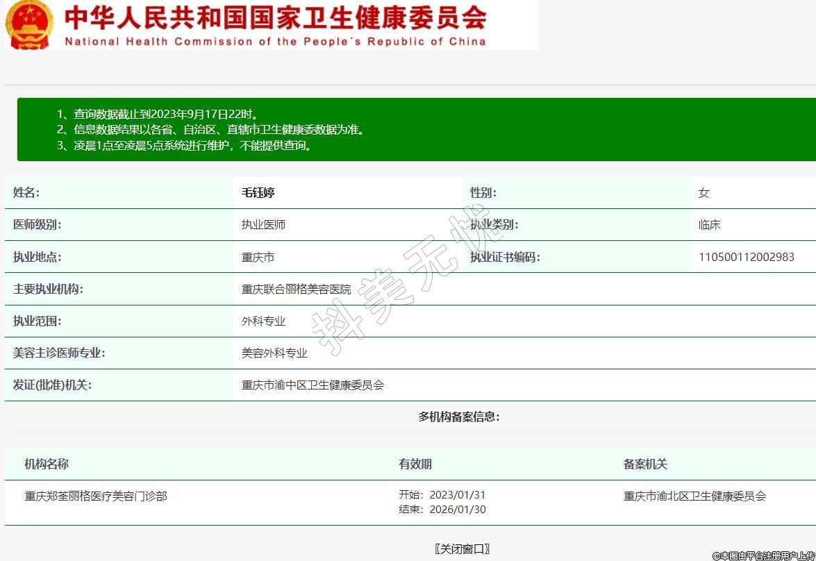 就職于重慶鄭荃麗格醫(yī)療美容門(mén)診部