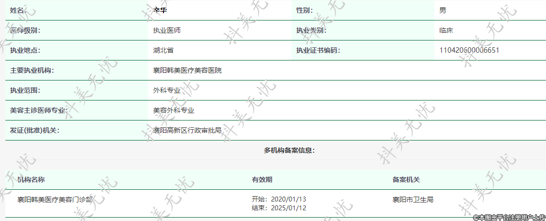 主要執(zhí)業(yè)機(jī)構(gòu):襄陽(yáng)韓美醫(yī)療美容醫(yī)院