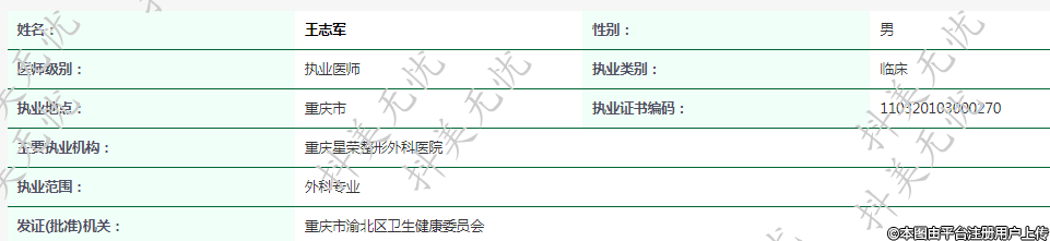 主要執(zhí)業(yè)機構(gòu):重慶星榮整形外科醫(yī)院