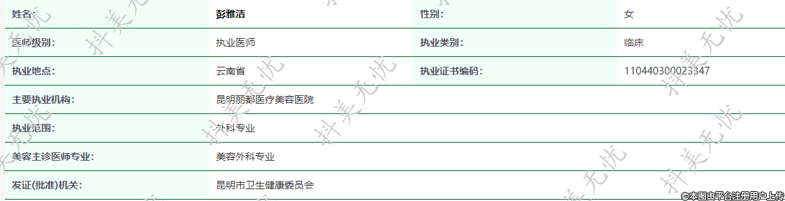 主要執(zhí)業(yè)機(jī)構(gòu):昆明麗都醫(yī)療美容醫(yī)院