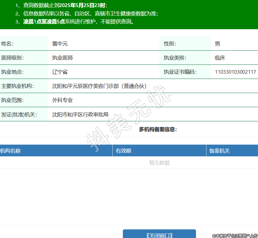 姓名:雷中元性別:男醫(yī)師級別:執(zhí)業(yè)醫(yī)師執(zhí)業(yè)類別:臨床執(zhí)業(yè)地點:遼寧省執(zhí)業(yè)證書編碼:110330103002117主要執(zhí)業(yè)機構(gòu):沈陽和平元辰醫(yī)療美容門診部(普通合伙)執(zhí)業(yè)范圍:外科專業(yè)發(fā)證(批準)機關(guān):沈陽市和平區(qū)行政審批局 -