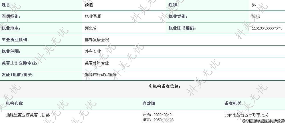 機(jī)構(gòu)名稱:曲勝星范醫(yī)療美容門診部