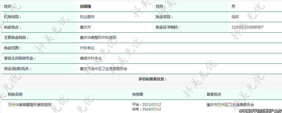 主要執(zhí)業(yè)機(jī)構(gòu):重慶華美整形外科醫(yī)院