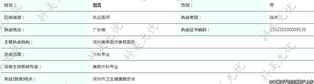 主要執(zhí)業(yè)機(jī)構(gòu):深圳美萊醫(yī)療美容醫(yī)院