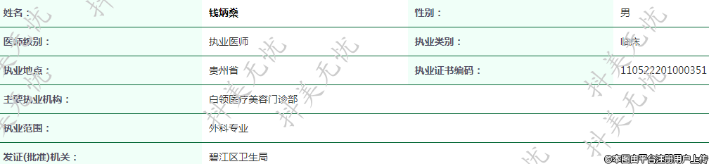 主要執(zhí)業(yè)機構(gòu):白領(lǐng)醫(yī)療美容門診部