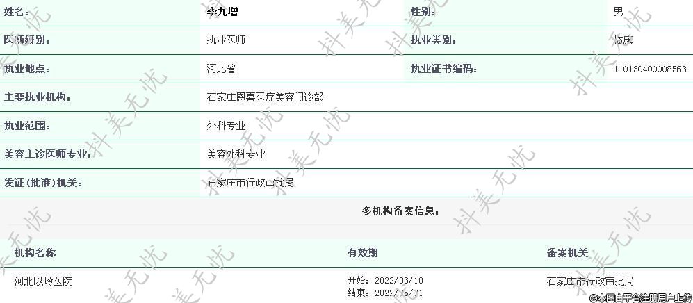 主要執(zhí)業(yè)機(jī)構(gòu):石家莊恩喜醫(yī)療美容門診部