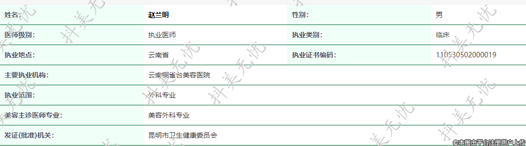 主要執(zhí)業(yè)機構(gòu):云南銅雀臺美容醫(yī)院