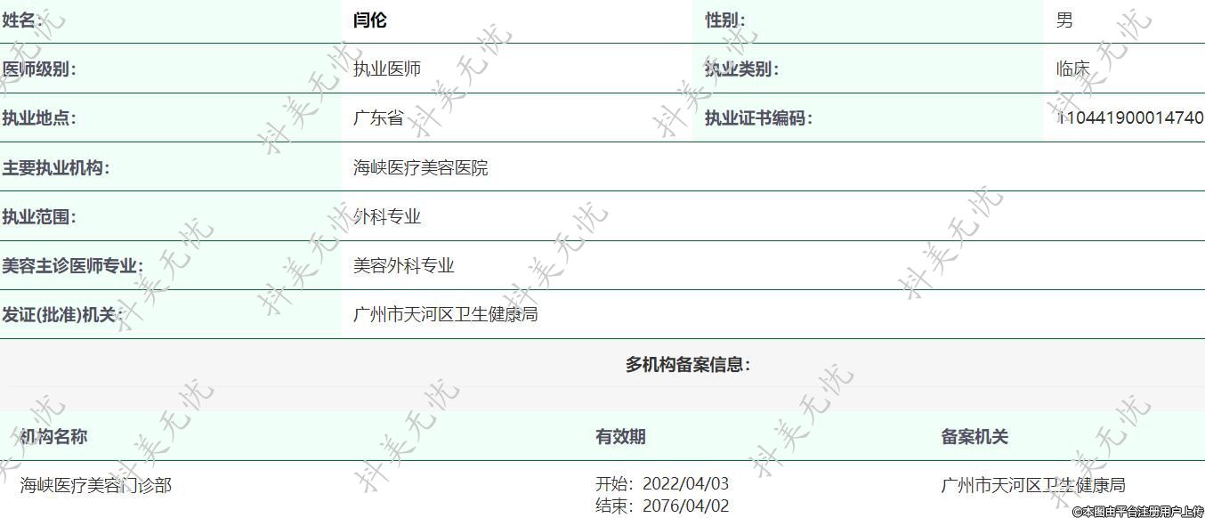 廣州海峽醫(yī)療美容執(zhí)業(yè)醫(yī)師 -