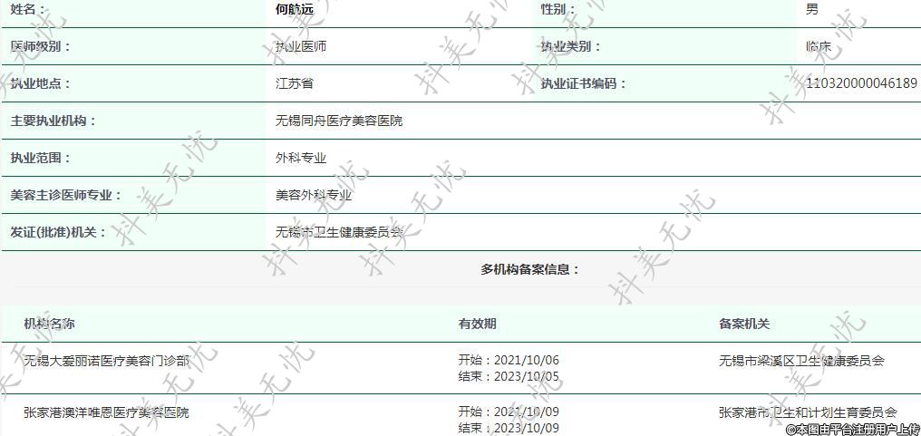 主要執(zhí)業(yè)機(jī)構(gòu):無錫同舟醫(yī)療美容醫(yī)院