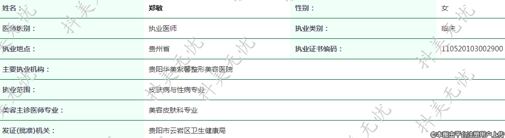 主要執(zhí)業(yè)機構(gòu):貴陽華美紫馨整形美容醫(yī)院