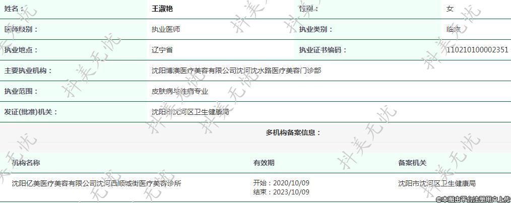 主要執(zhí)業(yè)機(jī)構(gòu):沈陽博澳醫(yī)療美容有限公司沈河沈水路醫(yī)療美容門診部