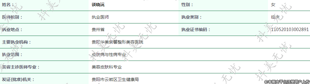 主要執(zhí)業(yè)機構(gòu):貴陽華美紫馨整形美容醫(yī)院