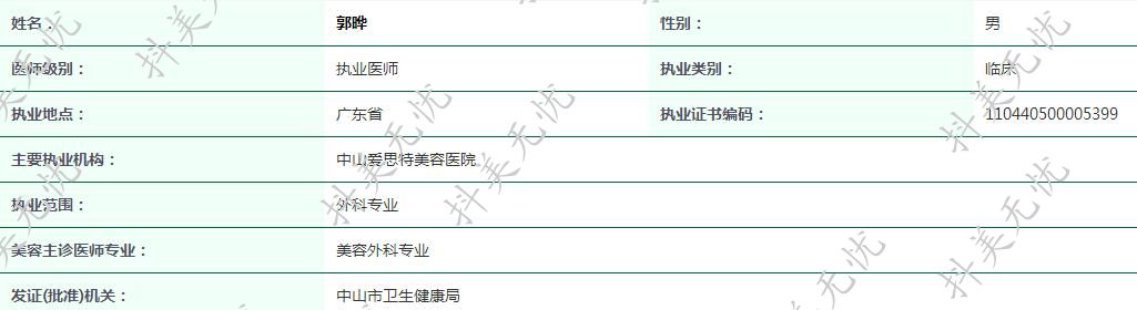 主要執(zhí)業(yè)機構:中山愛思特美容醫(yī)院
